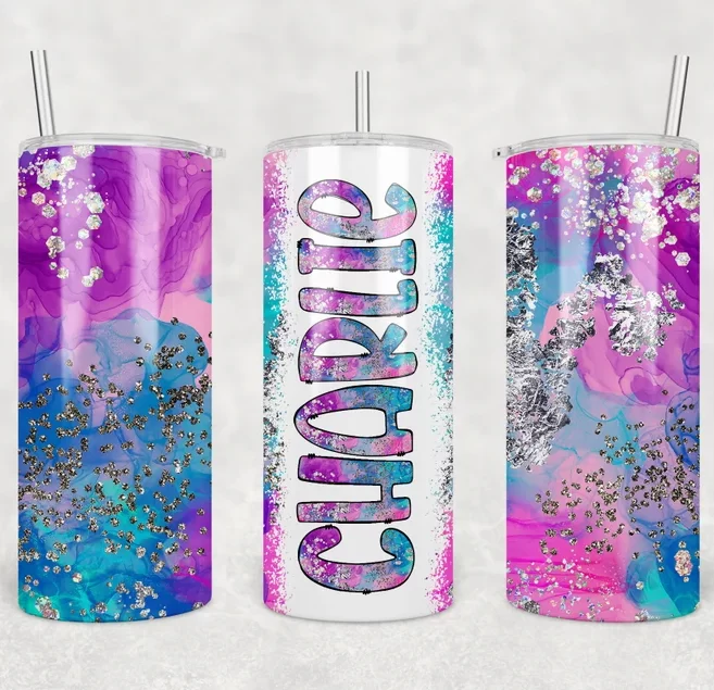 Beautifully high quality printed double walled stainless steel tumbler with a straw.